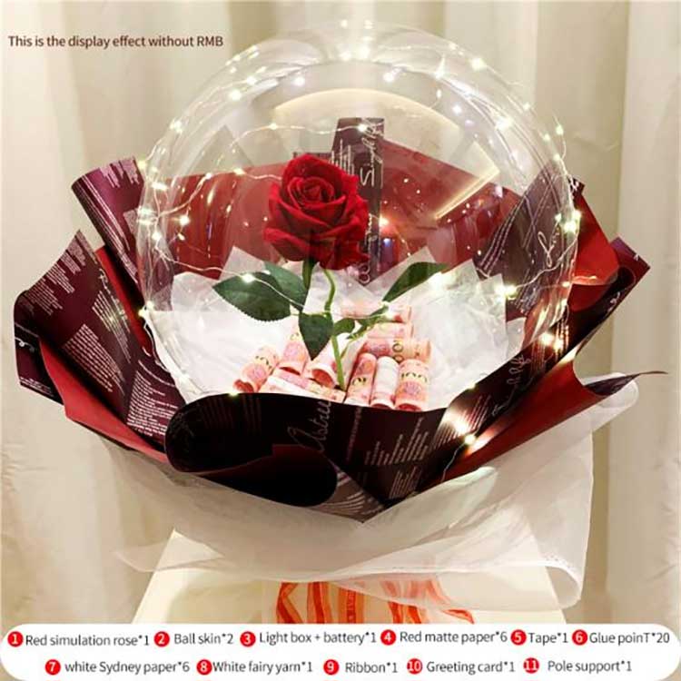 BOBO Balonuinanılmaz derecede atmosferik:Şeffaf BOBO balonları, gömülü güller ve LED ışıklardan oluşan set, parlak ve romantik bir görsel efekt yaratıyor. LED ışıklar aynı zamanda yumuşak bir parlaklık sağlayarak Sevgililer Günü, yıldönümleri, doğum günleri, mezuniyetler ve Anneler Günü için vazgeçilmez bir hediye haline geliyor.
