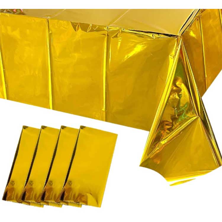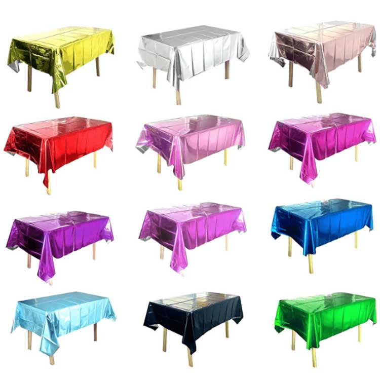 Folyo Masa örtüsü çeşitli kutlamalarda sofra düzeni için kullanılır. Masa yüzeyinin lekelenmesini, çizilmesini veya hasar görmesini önleyebilir, renk ve desenleri de dekoratif etkiler getirebilir. Özel PET alüminyum kaplı filmden yapılmıştır. Üretim sürecinde masa örtüsünün sağlamlığını, dayanıklılığını ve yaşlanma karşıtı performansını sağlamak için vakumlu kaplama teknolojisini kullandık. Üstelik yüksek yoğunluklu molekülleri çorba veya yağ lekelerinin nüfuz etmesini etkili bir şekilde önleyebilir ve aynı zamanda su geçirmez bir işleve sahiptir.
