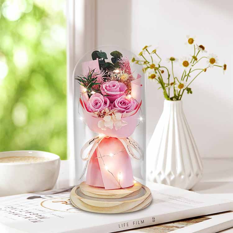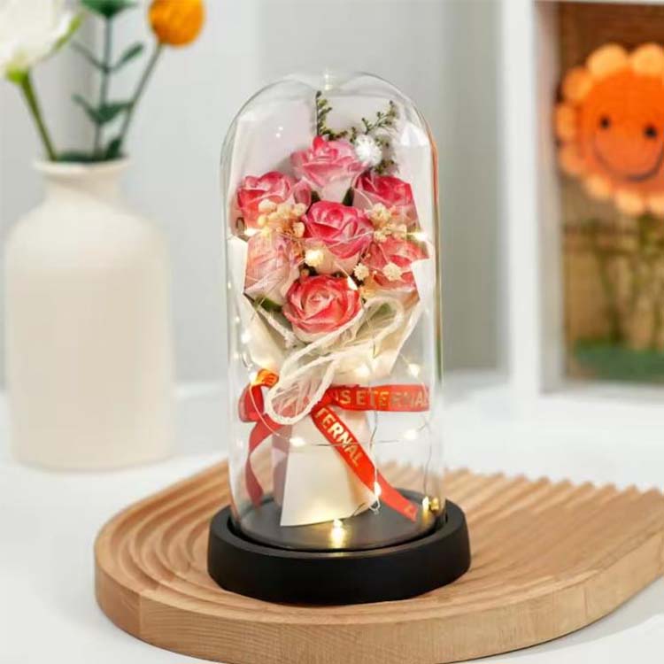 LED hediye kutulu cam kubbeli sabun gül buketimiz, pratik işlevselliği duygusal anlamla birleştirerek onu değer vermeye değer bir hediye haline getiriyor. İster evinize romantizm katıyor olun ister özel birine özel bir hediye gönderiyor olun, bu sıcak ve unutulmaz bir hediyedir.