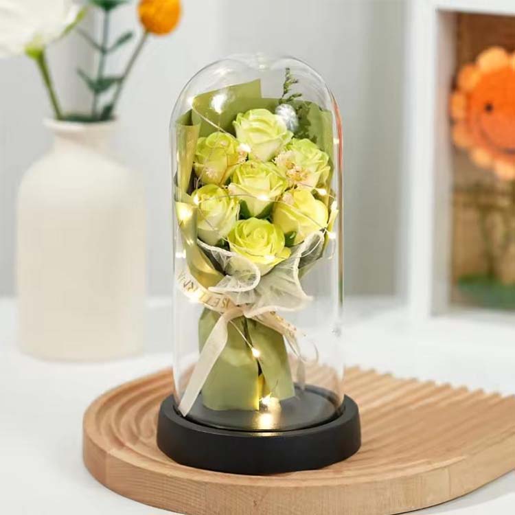 LED'li cam kubbeli sabun gül buketi, sabun çiçekleri ve korunmuş çiçeklerle birlikte kullanılır. LED ışıklar, sahneleri dekore ederken sıcak bir atmosfer katabilen sıcak ve göz kamaştırmayan ışık kullanır. Dahili LED ışık dizisi ayrıca renkli yanıp sönen ışıklara sahiptir ve renkler ihtiyaçlarınızı karşılayacak şekilde özelleştirilebilir. Cam kapaklı bu buket, doğum günleri, yıldönümleri, teklifler vb. gibi sahneleri ayarlamak için kullanılabilir ve ayrıca hediye olarak da verilebilir. hediye.Sonsuz çiçekler cam kapakla bile solmaz ve renk değiştirmez. Sabun çiçekleri el yıkamak için veya koku olarak da kullanılabilir. Bu gül buketi ekonomik ve pratiktir.