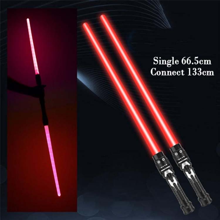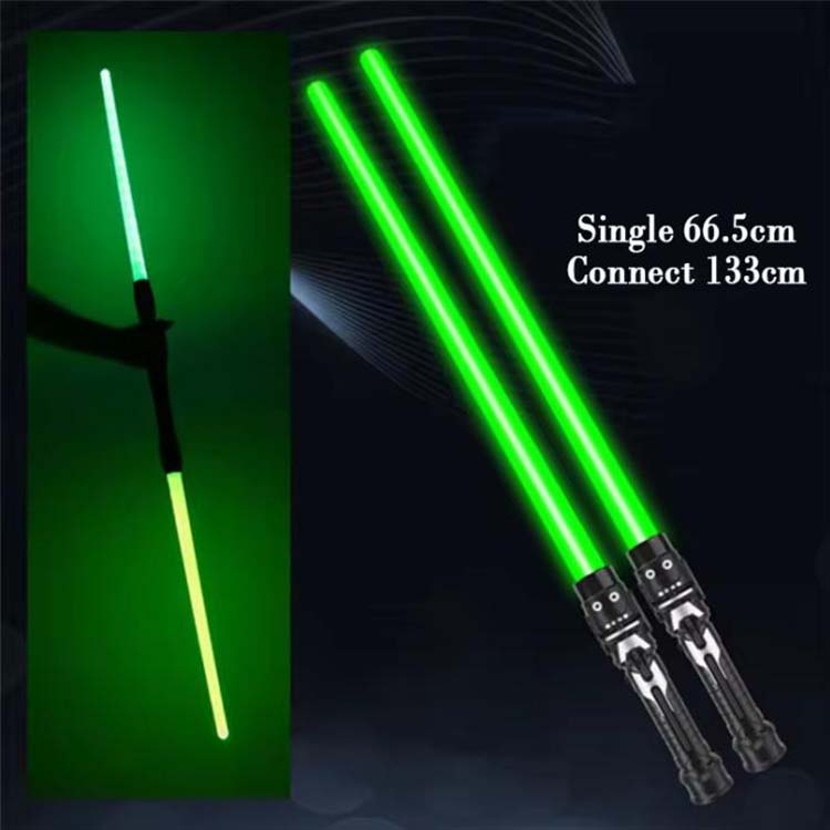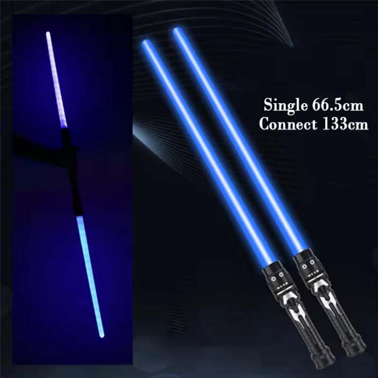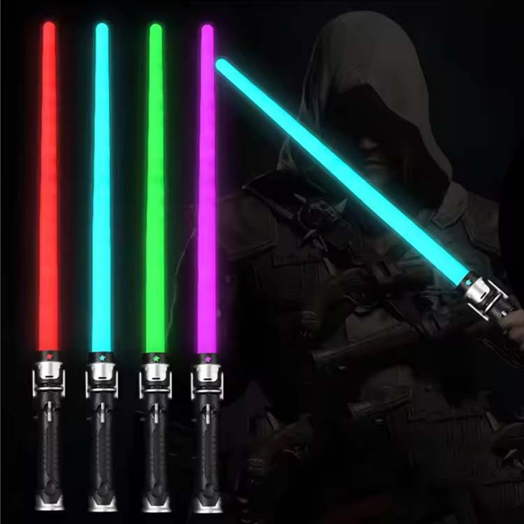 Hızlandırılması kolay bir tasarım parlayan tutamak ile ışıklı parlayan lazer kılıcımız. Ayrıca LED hafif yanıp sönme modu vardır. Renk ve ses harekete duyarlıdır.