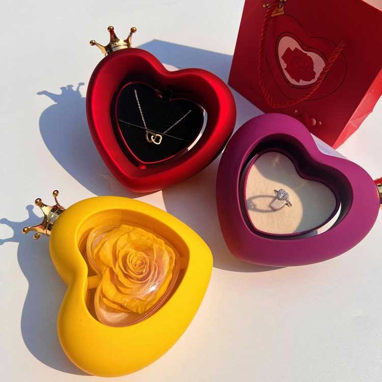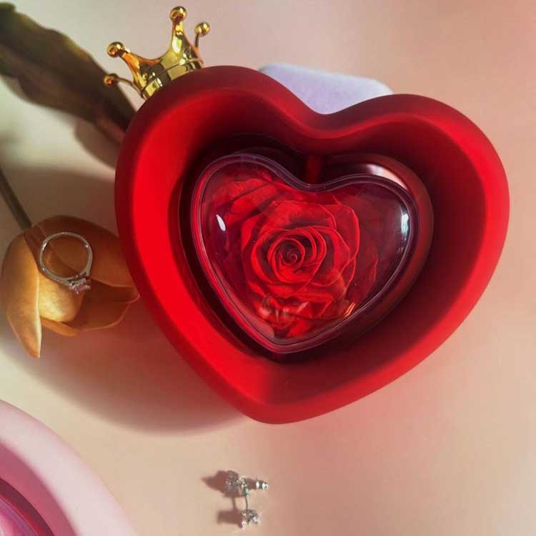 Kalp Şekli Gül Mücevher Kutusu, Kalp şekli sevgiyi simgelemektedir. Bu, sonsuza kadar el üstünde tutulmanın anlamını birleştirir.