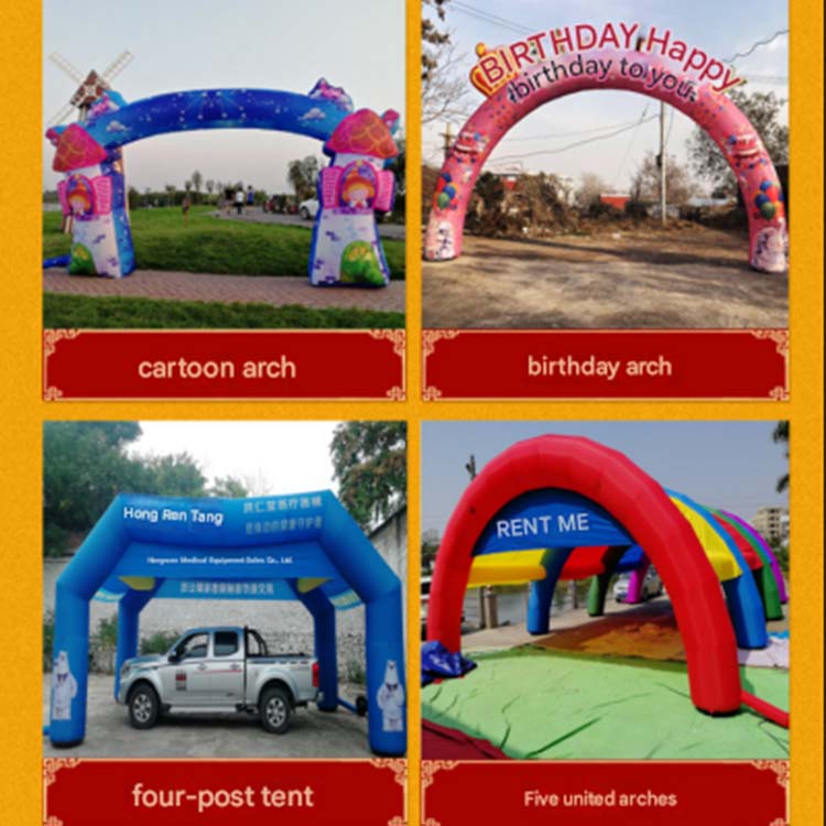 Dayanıklı malzemelerden yapılmış ve çeşitli şekil ve renklerde bulunan bu şişme kemerler bir pompa ile hızlı bir şekilde şişirilir ve kolay kurulum için kum torbaları ve halatlarla birlikte gelir. Büyük işaretlere veya olay alanlarına basılabilir ve yeniden kullanılabilir ve ekonomiktirler. Büyük açıklıklar, sergiler, okul etkinlikleri ve partiler için mükemmeldir.