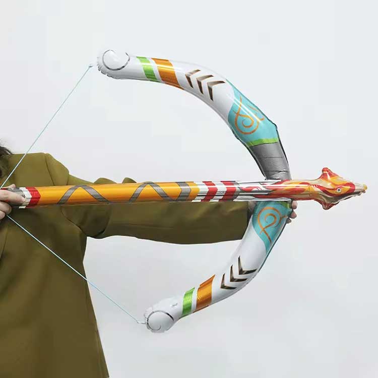 Şişirilebilir yay ve ok oyuncak seti, çocukların coşkulu oyunlarına dayanabilecek PVC'den yapılmıştır. Hızlı bir şekilde şişer ve şeklini uzun süre korur. Daha kolay değiştirilebilirlik için üç kılıç içerir.