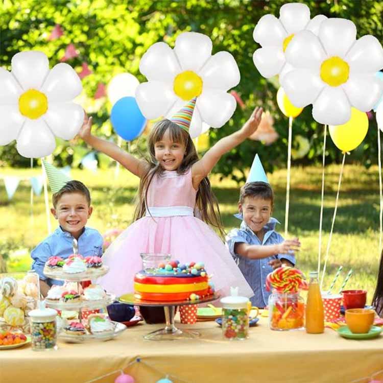 Doğum Günü Partisi: İster çocuklar veya yetişkinler için bir doğum günü olsun, altı-petal papatya folyo balonları partiye mutlu ve sıcak bir atmosfer getirebilir. Tavan, duvarlar, yemek masası ve parti sitesindeki diğer yerler balon balonları balon kemerlerine, balon sütunlarına ve diğer şekillere de yapabilir veya çocukların balonlarla fotoğraf çekmesine izin verebilir.