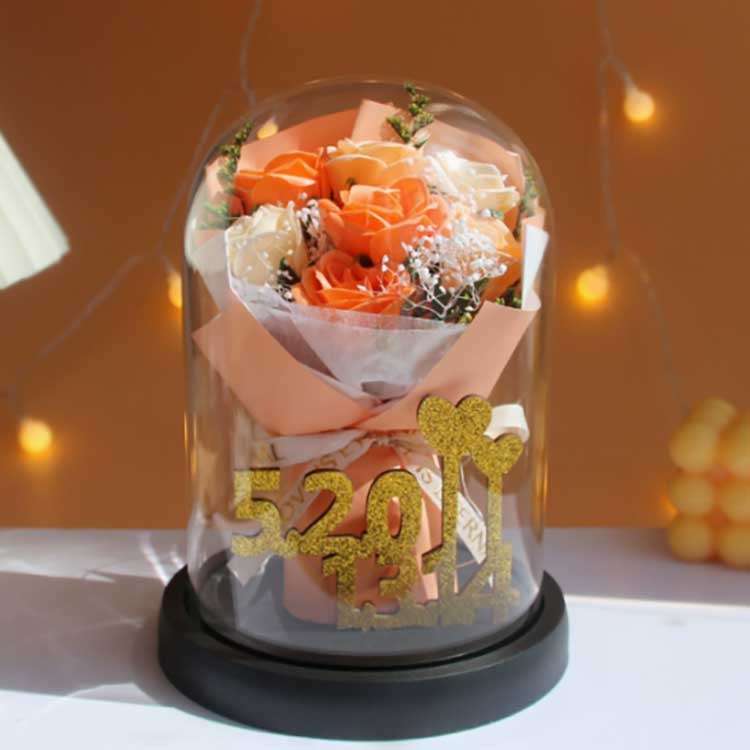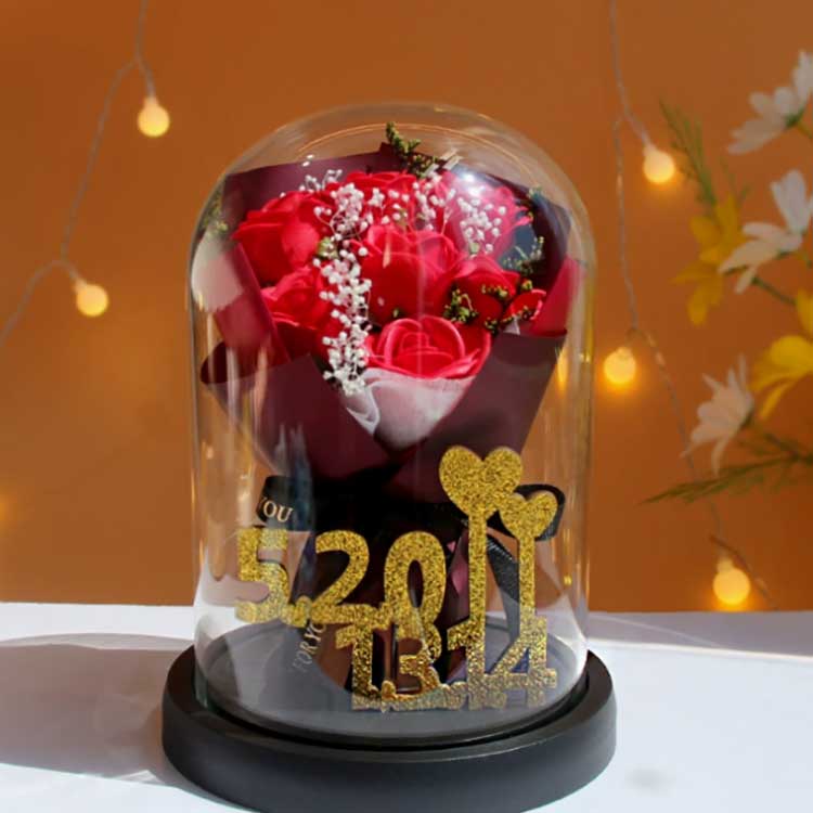 Bu cam gül buketi çiçeklerin solmasını önlemek için tasarlanmıştır ve içindeki güller solmaz. Buket çok gerçekçi, neredeyse gerçek çiçeklerden ayırt edilebilecek kadar güzel ve buketin güzelliğini çok iyi sunabiliyor. İçerisindeki 520+1314 altın rakamları 520 ve 1314 rakamlarını temsil ediyor, sevgiyi simgeliyor ve bu hediyenin düşünceliliğini vurguluyor.